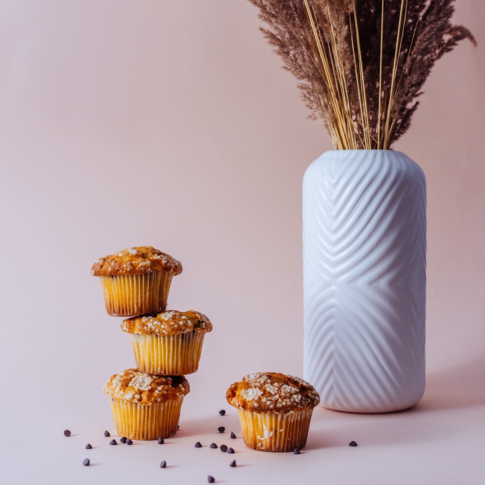Pyrago mišinys (kvietiniai miltai, modifikuotas krakmolas (kukurūzų), išrūgų milteliai (pienas), tešlos kildymo medžiagos:natrio difosfatas, natrio karbonatas, emulsikliai: riebalų rūgščių propan-1, 2-doilio esteriai, riebalų rūgščių mono – ir digliceridai, kviečių glitimas, druska, kvapioji medžiaga), kiaušinių masė, rapsų aliejus, cukrus, šokolado skonio gabaliukai 4,9% (hidrogenizuoti agaliniai riebalai, mažo riebumo kakavos milteliai, laktozė, emulsiklis sojos lecitinas, kvapai).