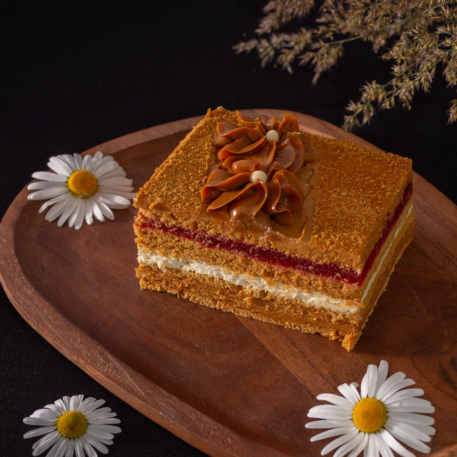 Plokštainis MEDUTIS su braškėmis ir karamele