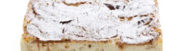 Pyragas OBUOLIŲ su varške – auksinės spalvos, su trapiu pagrindu ir minkštu įdaru. Jame susilieja obuolių gaiva, varškės švelnumas ir saldumo pusiausvyra. Kiekvienas gabalėlis primena jaukumą ir paprastą, bet tobulą skonį.