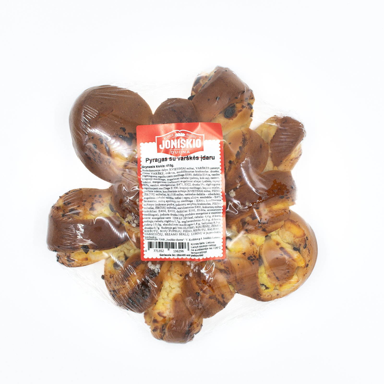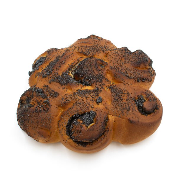 KVIETINIAI miltai, cukrus, aguoninis įdaras (maltos aguonos 32%, cukrus, PIENO IŠRŪGŲ milteliai, ekstrūduoti miltai, pakeistų savybių krakmolas, malto dekstrinas, cinamonas, kvapiosios medžiagos), margarinas (rafinuoti augaliniai aliejai (palmių, rapsų) 80%, vanduo, emulgatoriai: E471, E322, druska 1%, rūgštingumą reguliuojanti medžiaga E330, kvapioji medžiaga), aguonos, kepimo mielės, joduota druska, išrūgų milteliai, kepimo priedas (tirštiklis E412, emulsiklis E472e, KVIETINIAI miltai, fermentai, antioksidantas E300), konditerinis mišinys (KVIETINIAI miltai, PIENO IŠRŪGŲ milteliai, sojos miltai, natūralus dažiklis – ciberžolė).