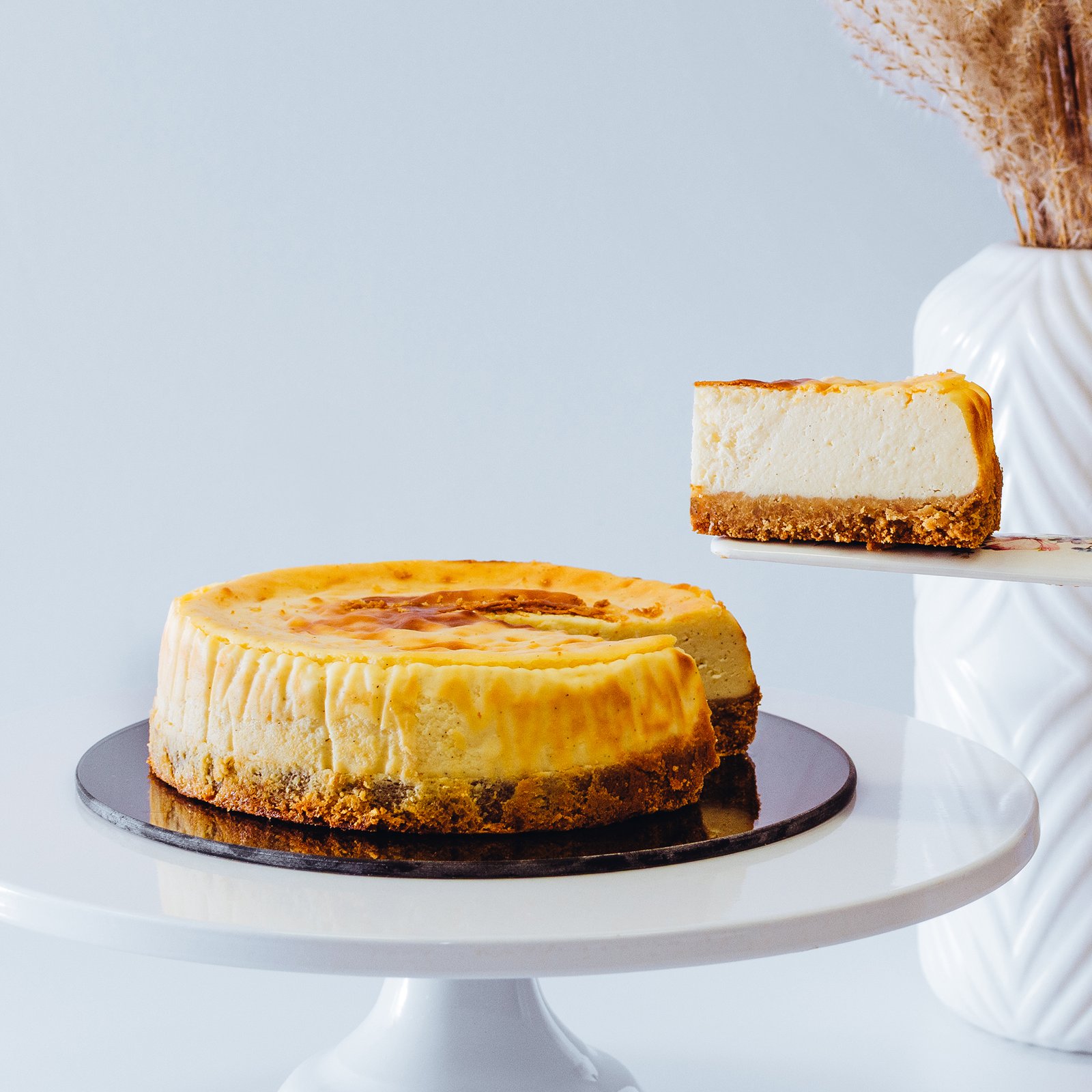 Kreminis varškės sūris (VARŠKĖ, nugriebto PIENO milteliai, natūrali kvapnioji medžiaga, druska, tirštikliai: saldžiųjų ceratonijų derva, pupenių derva; rūgštingumą reguliuojanti medžiaga citrinų rūgštis), sausainiai (KVIETINIAI miltai, cukrus, alyvpalmių aliejus, vanduo, gliukozės – fruktozės sirupas, emulsiklis sojų lecitinas, druska, tešlos kildymo medžiagos: natrio bikarbonatas, amonio bikarbonatas, dinatrio difosfatas), GRIETINĖ, cukrus, SVIESTAS, KIAUŠINIAI, KIAUŠINIŲ tryniai, kukurūzų krakmolas, vanilė, joduota druska.